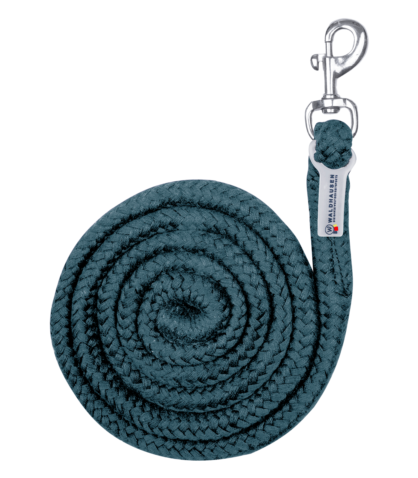 Kostengünstiger Anbindestrick mit glänzendem Karabinerhaken.