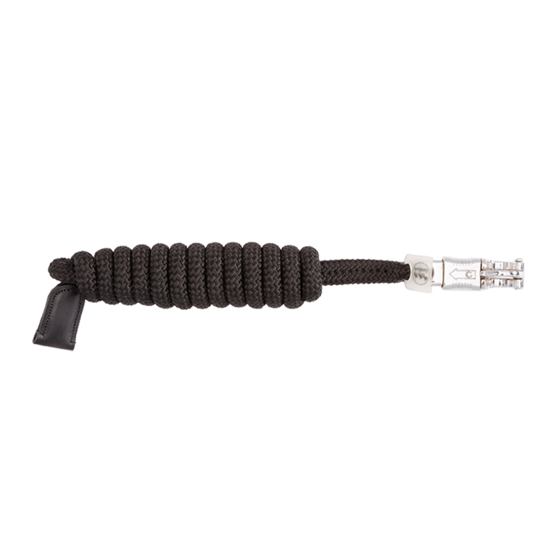 Angenehmer griffiger Führstrick aus Polyester. Qualitativ hochwertiger Panikhaken in silber. Endstück aus Leder.
