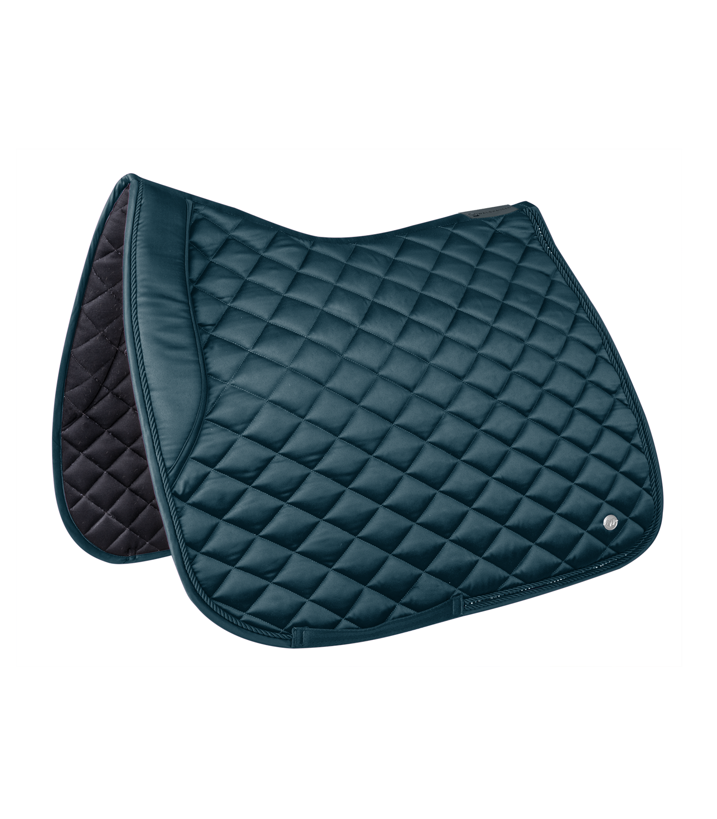 Elegante, hochwertige Schabracke im Glossy Material. Ein besonderes Detail ist das schimmernde Strassband zwischen zwei Zierkordeln. Das Logo wird in Form eines silbernen Metallplättchens dargestellt. Passend zu unser Nepal Kollektion.